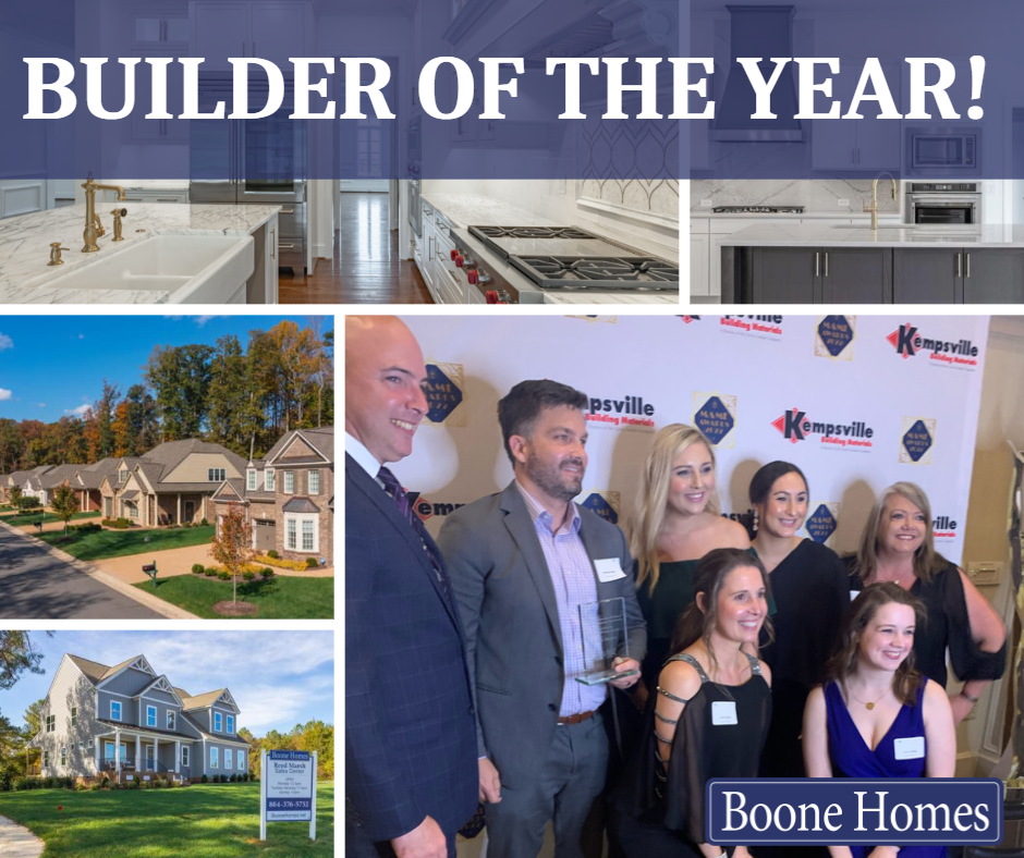 Boone Homes worked hard to be considered for this title by being the top supporter of the BuildPAC (political action committee) since 2005, National Association of Home Builders delegate representation, and diligent involvement in HBAR including Boone Homes President, Mitchell Bode, serving as 2020 HBAR President, current Executive Committee Member, and past Legislative Committee Chairman. Boone Homes also introduced 3 new floor plans in 2021 while developing 7 new floor plans for future communities, completed a rebrand including digital content, built and unveiled a brand new website which increased users by over 37%, and was featured in 3 Richmond Times Dispatch articles as well as 3 Richmond Bizsense articles.